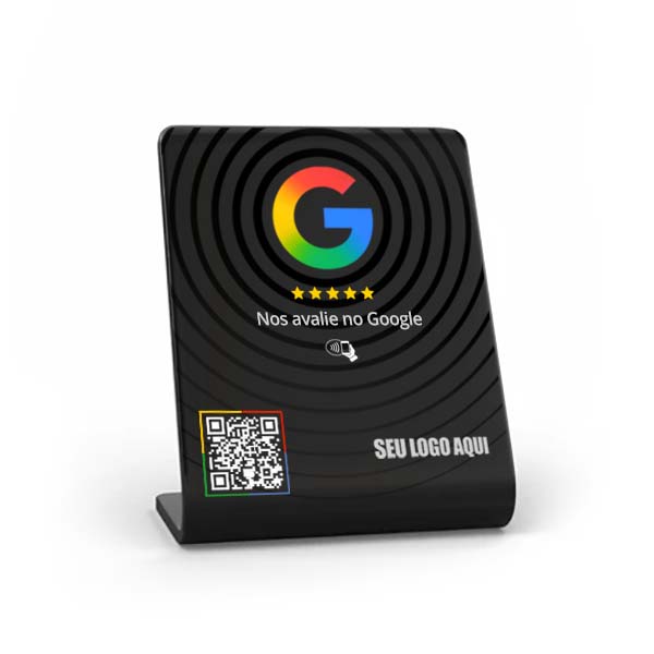 Display inteligente que conecta seu cliente direto ao seu perfil do Google com apenas um toque.